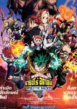My Hero Academia: You’re Next (2024) เป็นเรื่องราว ในสังคมที่เหล่าฮีโร่และผู้ร้ายต่อสู้เพื่อสันติภาพและความวุ่นวายอยู่ตลอดเวลา เดกุ นักเรียนมัธยมปลายจากมหาวิทยาลัยยูเออีผู้ใฝ่ฝันที่จะเป็นฮีโร่ที่ดีที่สุดเท่าที่จะเป็นได้ ต้องเผชิญหน้ากับวายร้ายที่ลอกเลียนฮีโร่ที่เขาชื่นชมมายาวนาน เดกุและนักเรียนมัธยมปลายจากมหาวิทยาลัยยูเออีที่เหลือจะสามารถช่วยโลกได้หรือไม่โดยการเอาชนะดาร์คไมต์ ชายผู้อ้างว่าตนเป็นสัญลักษณ์แห่งสันติภาพคนใหม่