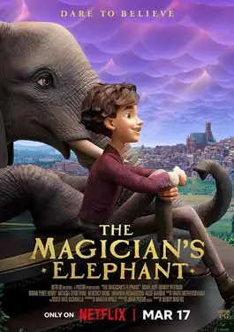 The Magician’s Elephant (2023) เป็นเรื่องราวของ เมื่อปีเตอร์หนุ่มที่กำลังตามหาน้องสาวที่หายไปนานได้พบกับหมอดูที่จัตุรัสตลาด มีคำถามเดียวในใจของเขาน้องสาวของเขายังมีชีวิตอยู่หรือไม่? คำตอบที่ว่าเขาต้องติดตามช้างลึกลับทำให้ปีเตอร์ออกเดินทางเพื่อทำภารกิจสามอย่างที่ดูเหมือนจะเป็นไปไม่ได้ให้สำเร็จ ซึ่งจะเปลี่ยนโฉมหน้าเมืองของเขาไปตลอดกาลอย่างน่าอัศจรรย์
