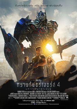 Transformers 4 Age of Extinction (2014) ทรานส์ฟอร์เมอร์ส มหาวิบัติยุคสูญพันธุ์ มหาวิบัติยุคสูญพันธ์ แม้เหล่าออโต้บอตส์และดีเซ็ปติคอนส์จะเร้นกายจากโลกมนุษย์ แต่กลุ่มนักธุกิจและนักวิทยาศาสตร์ยังทะยานอยากก้าวข้ามขีดจำกัดทางเทคโนโลยีของมวลมนุษย์ ด้วยการศึกษาค้นคว้าจากเหตุการบุกโจมตีโลกของเหล่าจักรกลที่มาจากจักรวาลอันไกลโพ้น โดยไม่รู้เลยว่าเหล่าเครื่องจักรทำลายล้างที่ทั้งโบราณและแข็งแกร่งกำลังเคลื่อนพลโดยมีโลกเป็นเป้าหมาย มหากาฬการต่อสู้ระหว่างความดีและความเลว อิสรภาพ และความเป็นทาสจึงอุบัติขึ้น